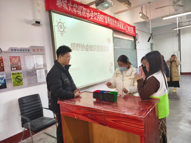为倡导绿色生活方式,增强同学们的环保意识,提高同学们参与环保行动的积极性,12 月 10日,聊城大学绿野协会于东校区4#C306举办了“绿野蕴风华 环保滋人心”知识竞赛活动。
