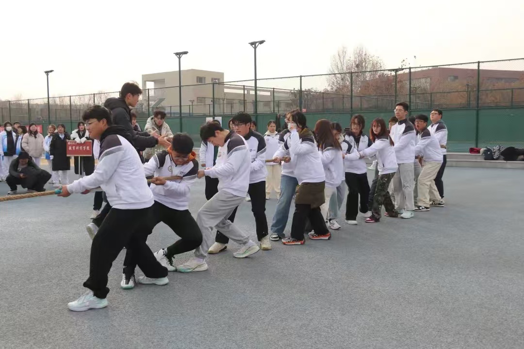 随着裁判一声哨响,拔河比赛正式开始。双方队员们迅速进入状态,屏息静气,身体后倾,双臂紧握长绳,双脚用力蹬地,神情专注而坚定。队员们用力量和毅力挑战极限,每一次拉锯都凝聚着团队的智慧与力量。赛场旁,同学们的加油声此起彼伏,热情如潮,他们奋声呐喊,为这寒冷的冬日增添了一抹浓浓的暖意和无尽的活力。这不仅是一场体力的较量,更是团队精神与集体荣誉的展现。随着赛程推进,比赛进入白热化阶段。队员们面色涨红,汗水如雨,却依然咬牙坚持。双方队员们皆拼尽全力,以不屈之姿诠释着竞技精神。此刻,胜负皆成过往,同学们在这场扣人心弦的拔河比赛里,共同见证了热血在青春画布上勾勒出的壮美剪影,每一个奋力拉扯的瞬间,每一声震耳欲聋的呐喊,都成为了青春长卷中浓墨重彩的笔触。最终,经过激烈比拼,我院荣获精神文明奖。