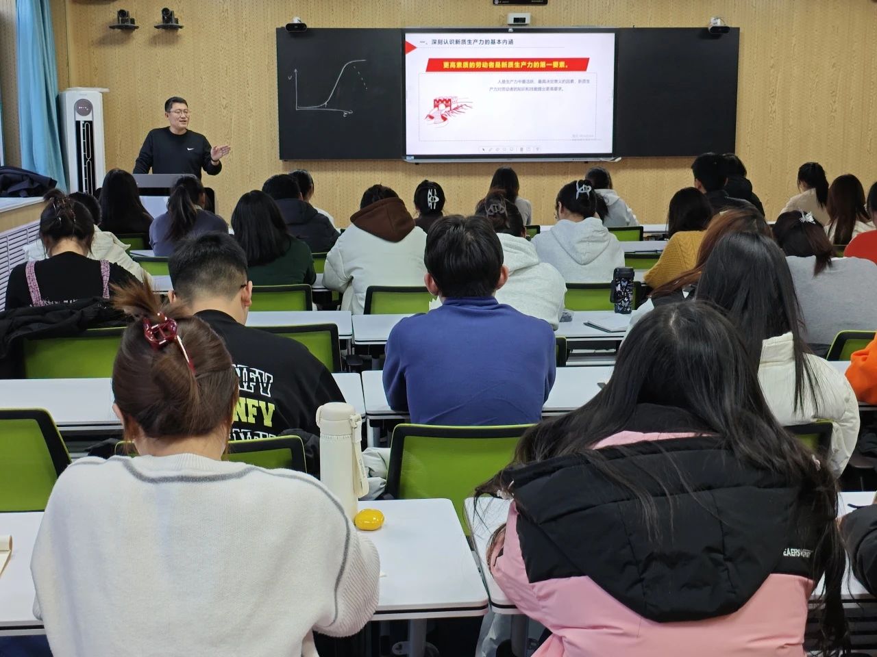 李军围绕“把握新质生产力的内涵特征,树立科技报国理想”这一主题,从新质生产力的基本内涵、核心标志、本质内容以及重要意义四个方面进行了详细解读,深刻阐述了社会主义的根本任务和新时代新质生产力的关系,指出了新质生产力是符合新发展理念的先进生产力质态、科技创新是发展新质生产力的核心要素。接着,他立足工作机制,紧密联系当下中国国情,深入浅出地剖析了发展新质生产力的有效方法与实践路径。他着重指出高质量发展作为首要任务的关键地位,呼吁并勉励青年学子们在今后的学习生活里,秉持终身学习理念,持续增进自身科技素养,磨砺创新思维,锤炼过硬创新能力。学生们认真聆听,深入探讨,会后纷纷表示将以此次培训会为契机,更加深入地学习党的理论和路线方针政策,不断提升自己创新能力,为新质生产力赋能经济发展贡献青春力量。