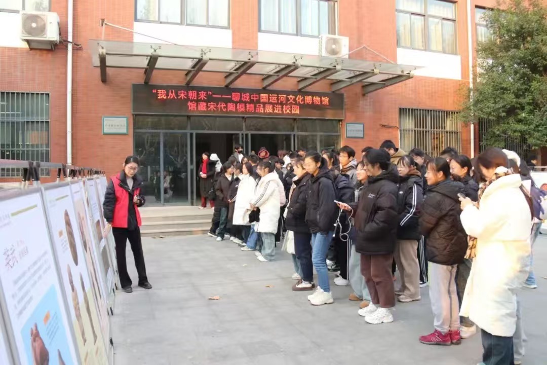 聊城中国运河文化博物馆之宋代陶模精品展走进校园,一场精彩纷呈的馆校文化交流活动正式拉开帷幕。“我从宋朝来”巡展展现了聊城中国运河文化博物馆的珍贵文物,通过详细的文字说明和模型展示,向同学们展示了精美的宋代陶模。本次讲解围绕市井民俗、仕宦兵佣、宗教崇拜、祥禽瑞兽、可爱孩童、花卉草木、陶模制作七部分进行,讲解员为同学们全面地讲解陶模基本文化知识,从多角度展示宋代陶艺,包括精品陶器、陶范和陶器故事。同学们仔细地观看展板,在讨论中增加了对历史文化的认同感和自信感。同学们在观看展板的基础上,积极举手向讲解员咨询疑惑。讲解员则针对同学们的提问作出详细地解答。在欣赏展览后,同学们纷纷表示,希望此次巡展让他们在增长知识的同时,也能为传承和弘扬中华优秀传统文化贡献自己的力量。