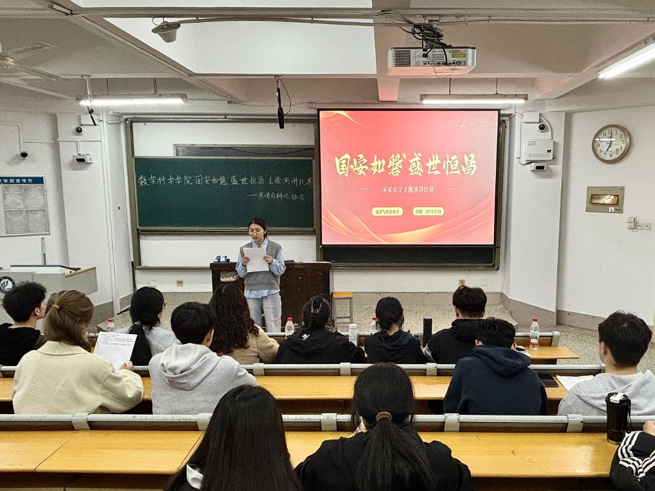 2月28日,数学科学学院在11号教学楼A204教室举办了一场以“国安如磐,盛世恒昌”为主题的国家安全演讲比赛,旨在深化学生的国家安全意识,培育浓厚的爱国主义情感。此次活动由辅导员张琦担任评委,2023级和2024级部分同学参加。