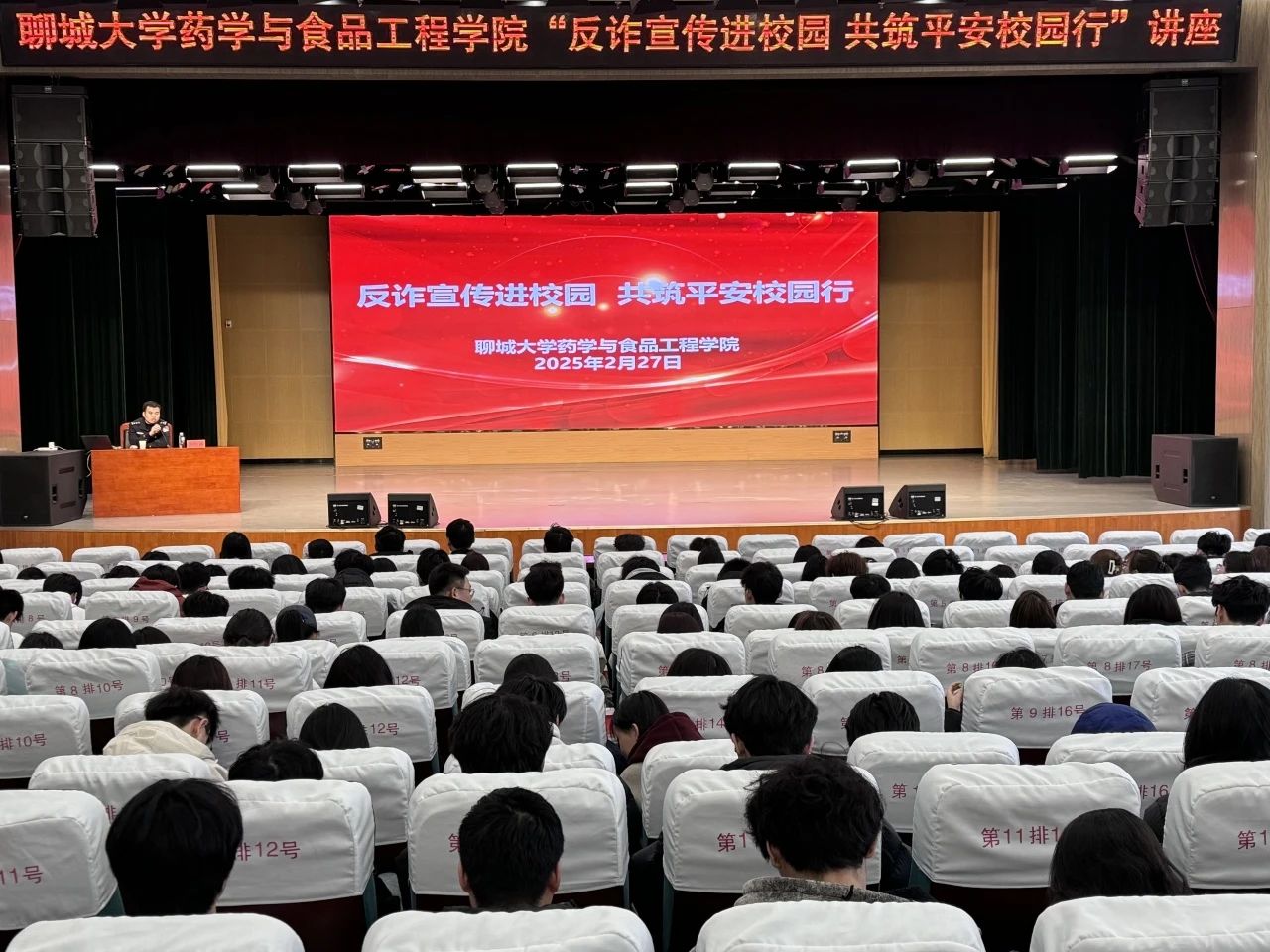 为深入贯彻习近平总书记关于加强国家安全教育的重要指示批示精神,切实提高大学生网络诈骗防范意识,有效遏制校园诈骗案件的发生,2月27日,聊城大学药学与食品工程学院于聊城大学西校区科学会堂举办以“反诈宣传进校园,共筑平安校园行”为主题的宣传教育讲座。本次讲座特邀聊城市公安局刑侦支队电信网络新型犯罪侦查大队许恒洋担任主讲人。