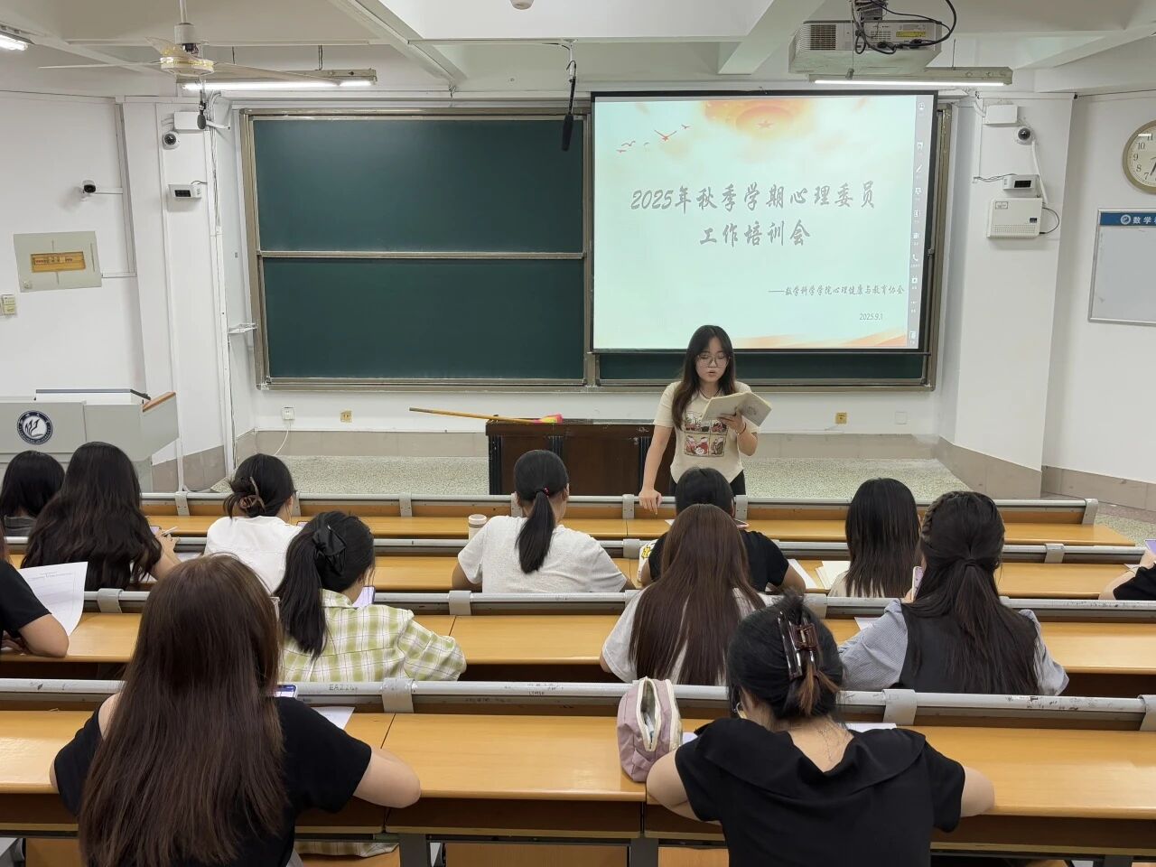 为进一步提升心理委员的专业素养与工作能力,保证心理健康教育工作有序开展,9月1日,数学科学学院于11号教学楼A207教室举办2025年秋季学期心理委员工作培训会,本次活动由心理健康与教育协会理事长王梦娴主持,研究生、2022级、2023级、2024级心理委员参加。
