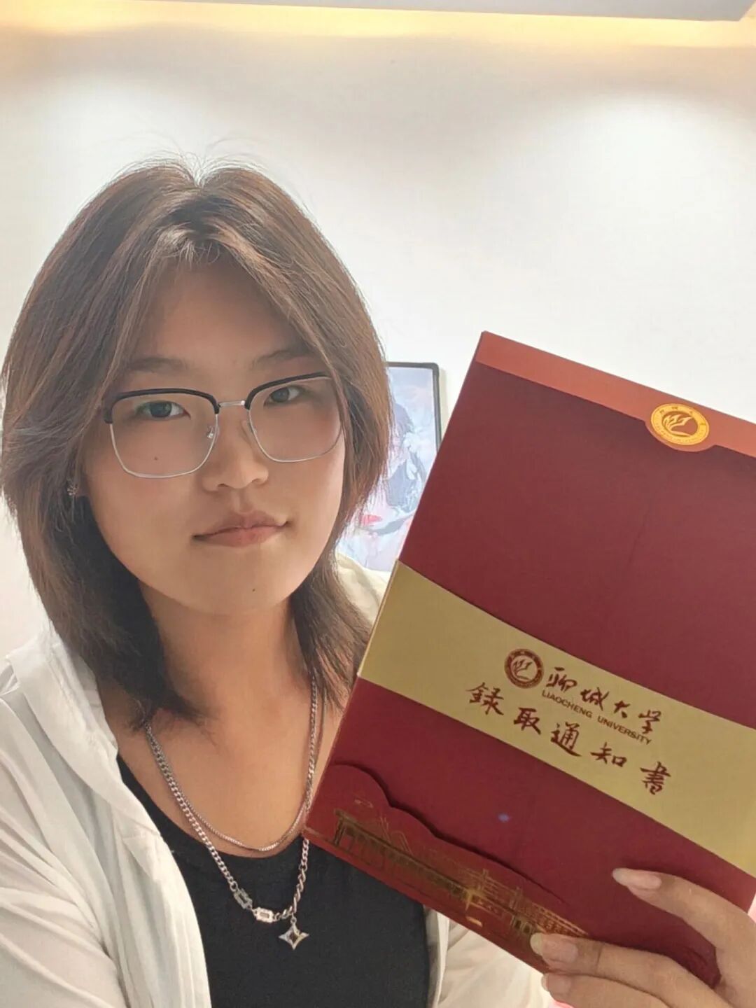 白宇婷,通信工程,功不唐捐,玉汝于成。手握录取通知书的这一刻,我感受到的不仅是一纸文书,更是沉甸甸的期待与机遇。聊大,这座秉承“博学、求实、创新”精神的学府,为我们提供了广阔的舞台。愿在此以代码为笔、以逻辑为墨,书写炽热而坚定的大学时光,努力成长为一个有理想、有担当的聊大人。