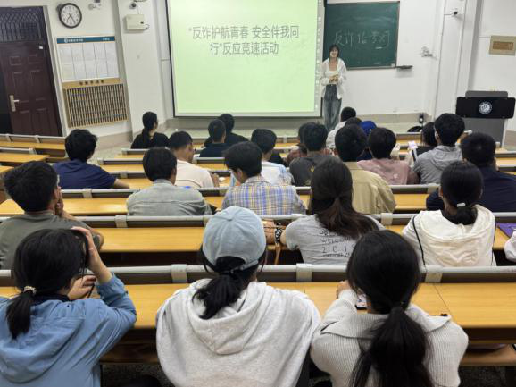 在互动问答环节,主讲人聚焦学生日常生活场景,围绕“虚假购物退款”“冒充老师收缴费”“兼职刷单返利”等高频诈骗情境抛出问题,台下同学纷纷举手,踊跃争取作答机会。主讲人根据同学们的回答,拆解情景中的诈骗“破绽”,引导大家纠正认知偏差,强化正确应对逻辑,让反诈知识真正转化为可实践的应对能力。最后,主讲人提醒同学们将所学技巧融入日常生活,时刻保持警惕,避免落入诈骗圈套。