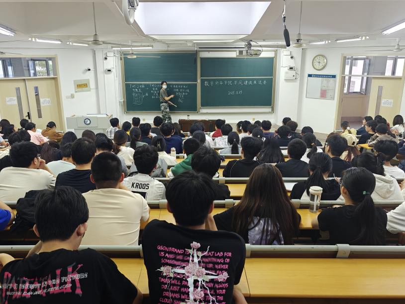 为加强班级的学风建设,营造积极向上、严谨务实的学习氛围,9月25日,数学科学学院于11号教学楼A207教室开展学风建设座谈会,本次活动由辅导员徐鑫主持,辅导员张琦、赵文豪及2022级、2023级、2024级相关学生干部共同参加。