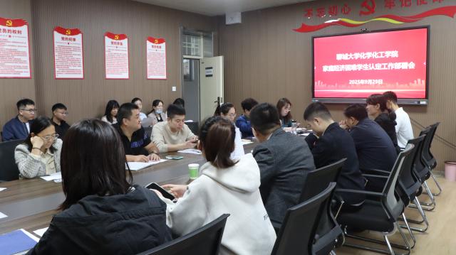为全面落实学校关于家庭经济困难学生资助工作的政策要求,规范认定流程,确保资助工作公平、公正、公开,9月29日,化学化工学院于4A115举办家庭经济困难学生认定工作部署会。化学化工学院党委书记李鹏,党委副书记、副院长段艳林,全体辅导员及班主任参加会议,会议由赵艳敏主持。