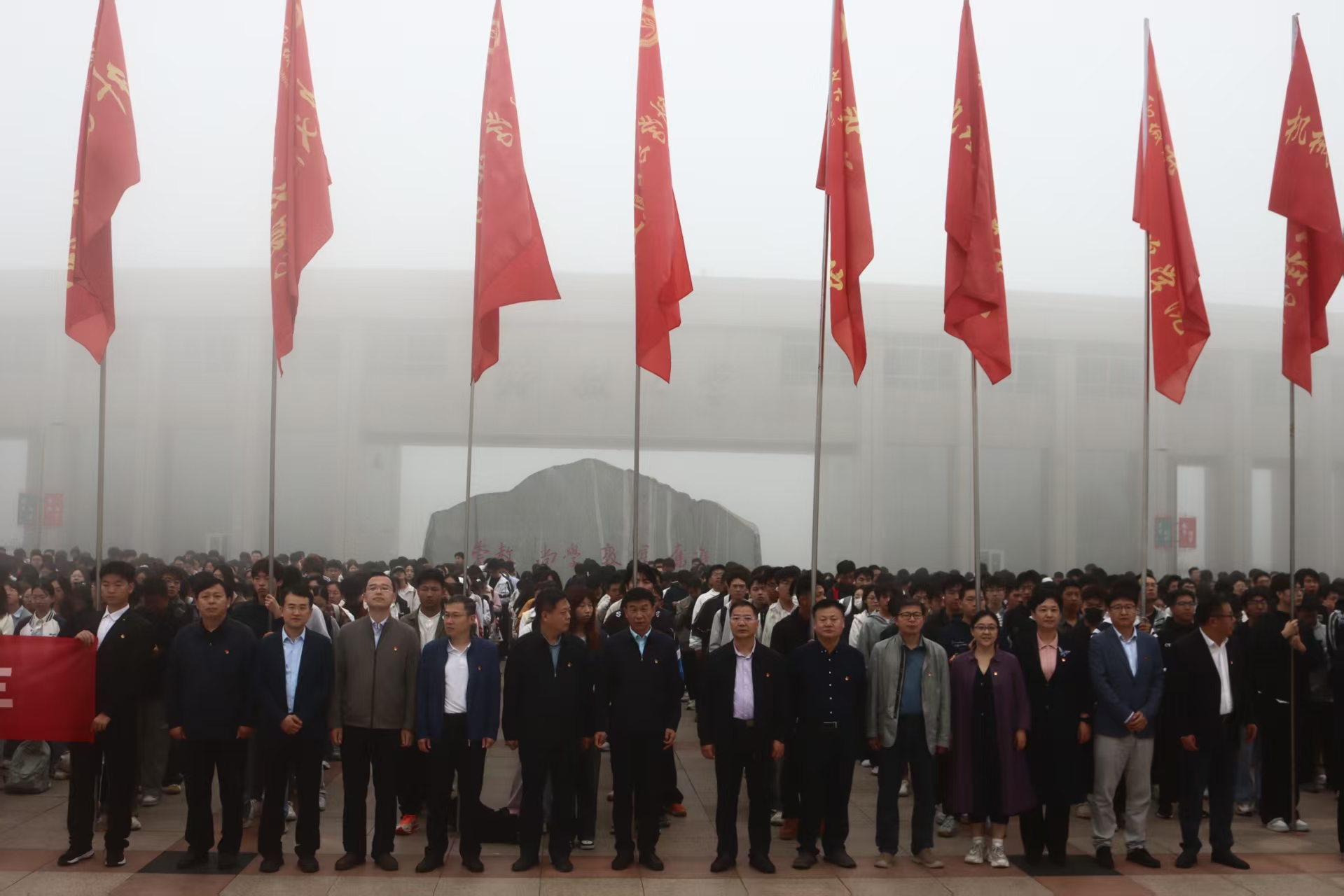 旭日初升,辉映青春壮志;国歌嘹亮,激荡奋进豪情。迎着朝阳,国旗护卫队旗手肩擎国旗,迈着铿锵有力、整齐划一的步伐,护送国旗至升旗台前。《义勇军进行曲》奏响,全体师生面向五星红旗肃立,行注目礼,默唱国歌。物理科学与信息工程学院团委书记洪文静以《致敬祖国华诞,笃行使命担当》为题,阐述青年一代在强国建设和民族复兴新征程上应有的担当,点明深入学习领会国家大政方针的重要性,督促同学们要勤学笃行,不断提升专业素养和综合能力。王泽青、张晓畅、张紫藤、张璐焓四位学生代表以题为《青春告白,礼赞中国》的朗诵,展示了聊城大学学生积极向上、心系家国的精神风貌,呼吁全体同学要更加自觉地关注国家发展,锤炼过硬本领,努力成长为有理想、能担当、肯吃苦、肯奋斗的新时代好青年,为中国特色社会主义事业贡献自己的青春力量。