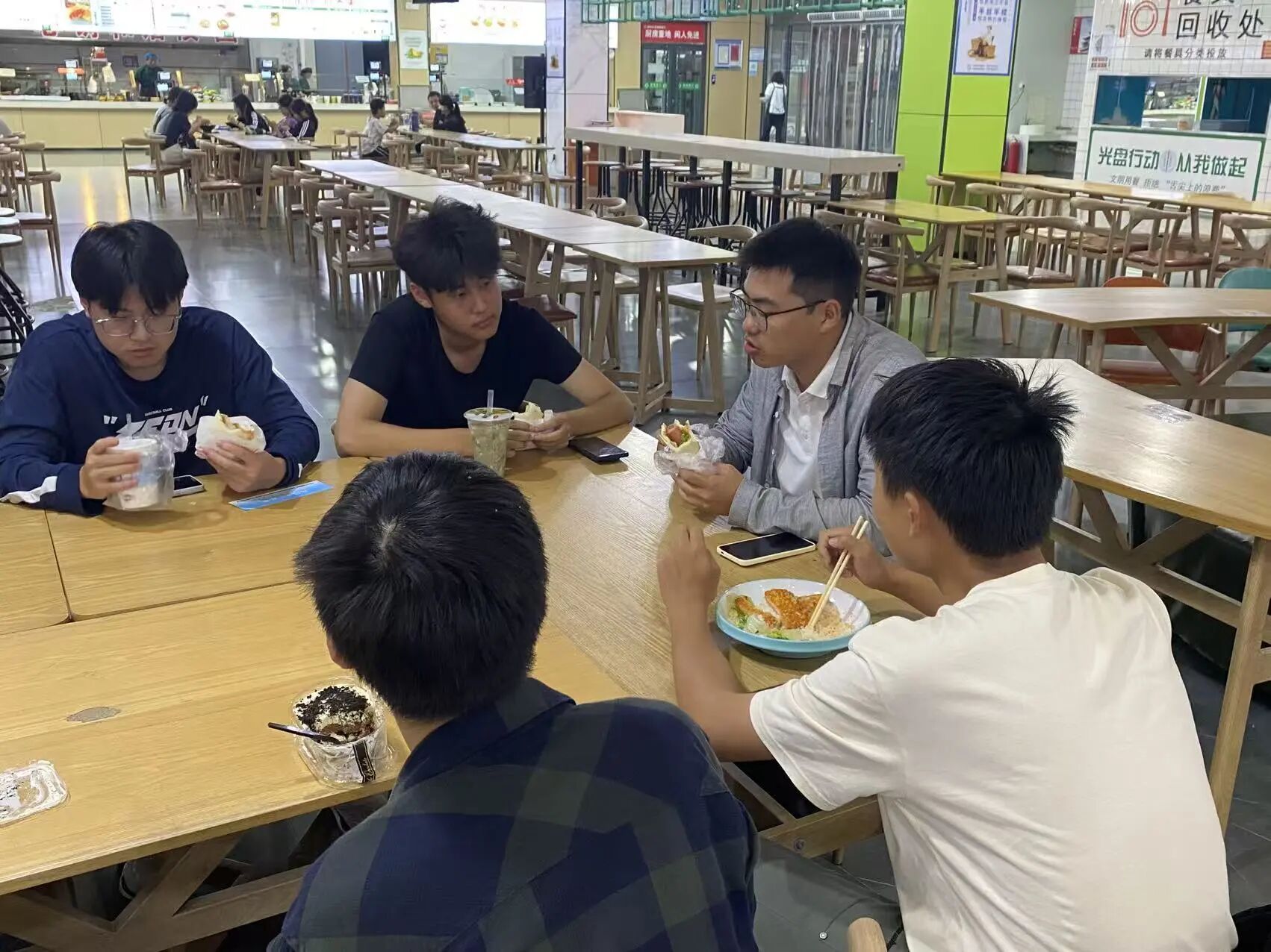 门英豪与留校学生们围坐交流,从“入学适应”、“课余生活”、“学业发展”三个维度深入了解了学生们的留校状况。他细致地询问同学们入学后的适应情况、感兴趣的课余活动,以及专业学习规划,以真切关怀拉近与学生们的距离。交流中,同学们积极分享留校原因、假期计划,也倾诉了对家乡的思念。门英豪认真倾听并为同学们疏导情绪,同时嘱咐同学们,若在生活或学习上遇到难题,可随时向老师求助。最后,门英豪鼓励同学们在留校期间相互照应、积极交流,既要通过运动、阅读调节状态,也要利用假期查缺补漏,让假期在充实中收获成长。现场氛围轻松融洽,同学们纷纷表示感受到了家一般的温暖。