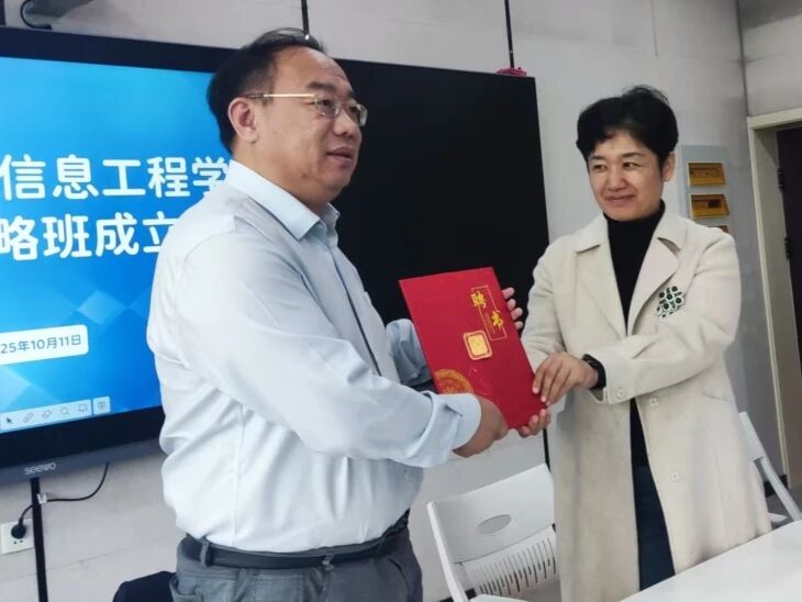 为助力学子明确成长方向,精准规划大学路径,充分发挥优秀校友的榜样引领作用,10月11日,物理科学与信息工程学院举办2025级“明略班”成立仪式,2000级物理学优秀毕业生张凤艺担任班级生涯规划导师,物理科学与信息工程学院党委副书记赵长平、团委书记洪文静及2025级明略班全体新生参与本次成立仪式。