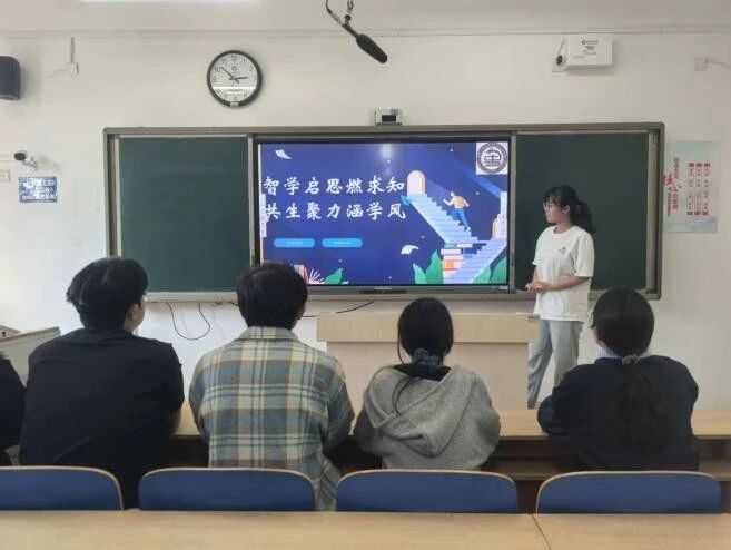 在互动环节中,同学们纷纷拿起粉笔,在黑板上写下“理想学风诉求”与“个人学习承诺”。一句句真诚的话语,既表达了对优良学风的向往,也彰显了大家认真学习的决心。此外,现场还设置提问环节,同学们踊跃提出学习中遇到的困惑,其他同学积极参与讨论,共同给出针对性建议。现场氛围热烈,有效打破单向宣讲模式,实现了双向交流与共同成长。