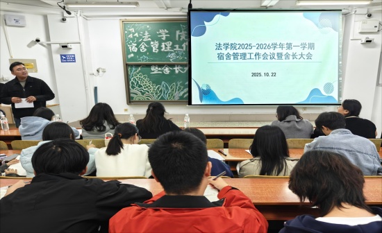 10月26日,为进一步提升学生的安全意识,发挥舍长在寝室管理中的核心作用,法学院于西校区11#A110召开2025—2026学年第一学期宿舍管理工作会议暨舍长大会。法学院党委副书记、副院长刘洁,辅导员马丽亚、李宁出席本次会议,法学院2023级、2024级、2025级各班班长、团支书及各宿舍舍长参与此次会议,会议由兼职辅导员陈星宇主持。