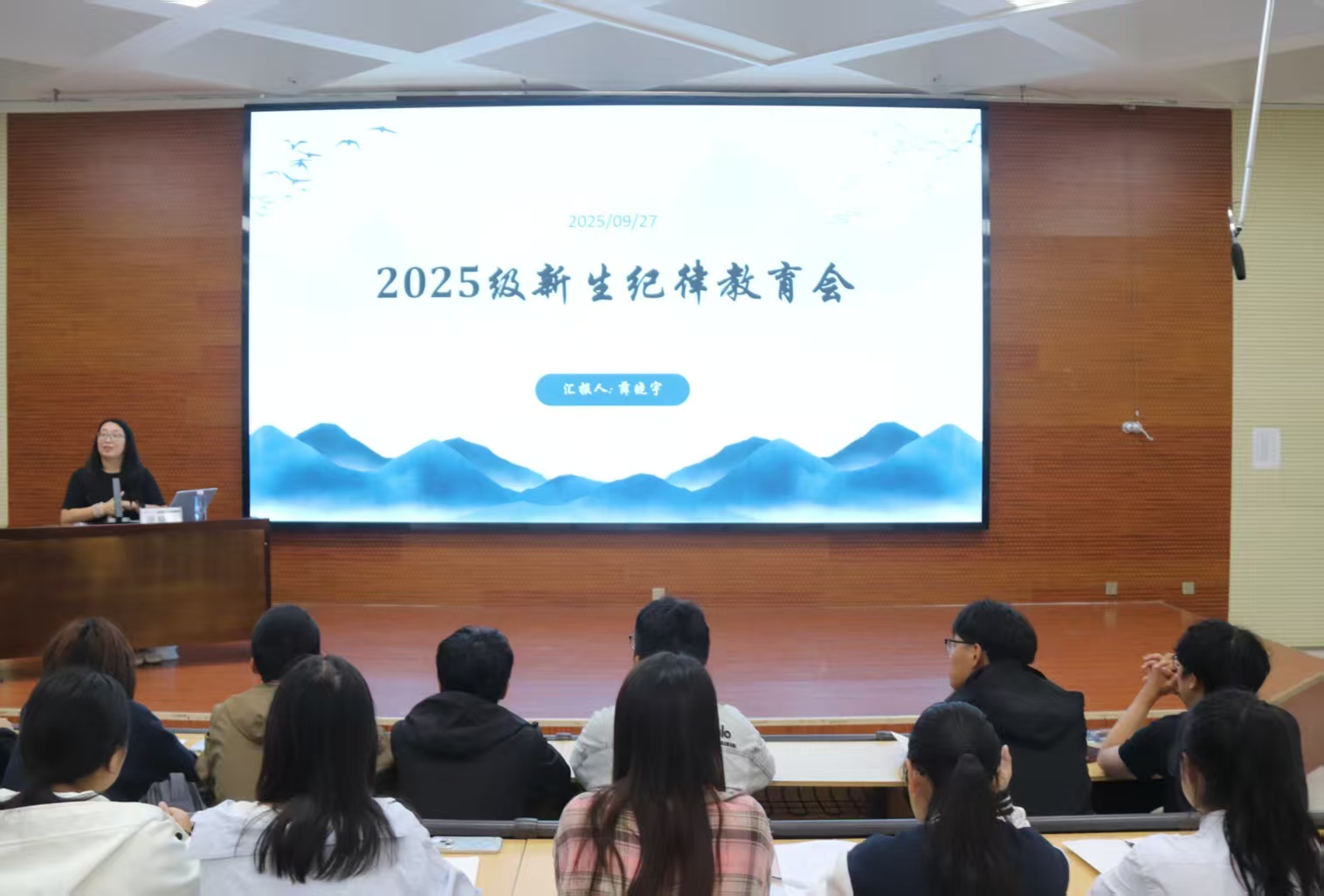 为帮助2025级新生尽快适应大学生活,明确大学阶段的行为规范,近日,历史文化与旅游学院于6#106报告厅举办2025级新生纪律教育会。本次会议由2025级新生辅导员薛晓宇担任主讲人,全体2025级新生参与。