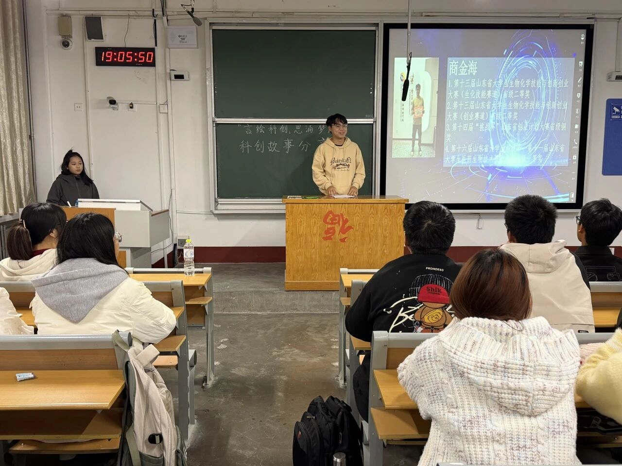 为激发学生的科创热情,助力他们将专业知识转化为创新动能,10月26日,聊城大学药学与食品工程学院于2#210举办以“言绘科创,思涌梦想”为主题的科创故事分享会。