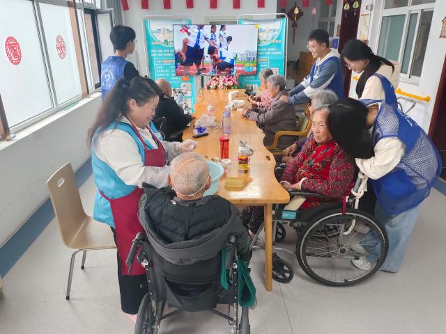 同学们们表示:“能用所学所长陪伴老人、传递温暖,我们倍感荣幸,也希望能为老人们的晚年生活添一份充实与快乐。”活动尾声,同学们协助分发餐食后与老人道别,老人们拉着志愿者的手念叨“留下吃顿饭再走”,既是发自内心的挽留,更是对这份志愿服务最真切的认可。