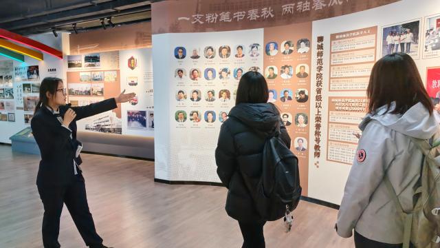 同学们怀着憧憬与好奇,在讲解员的介绍中系统了解了学校从山东师范学院聊城分院到聊城师范学院,再发展到聊城大学的光辉历程,见证了聊城大学在发展过程中的众多成就,深刻感受到一代代聊大人自强不息、拼搏进取的精神风貌。