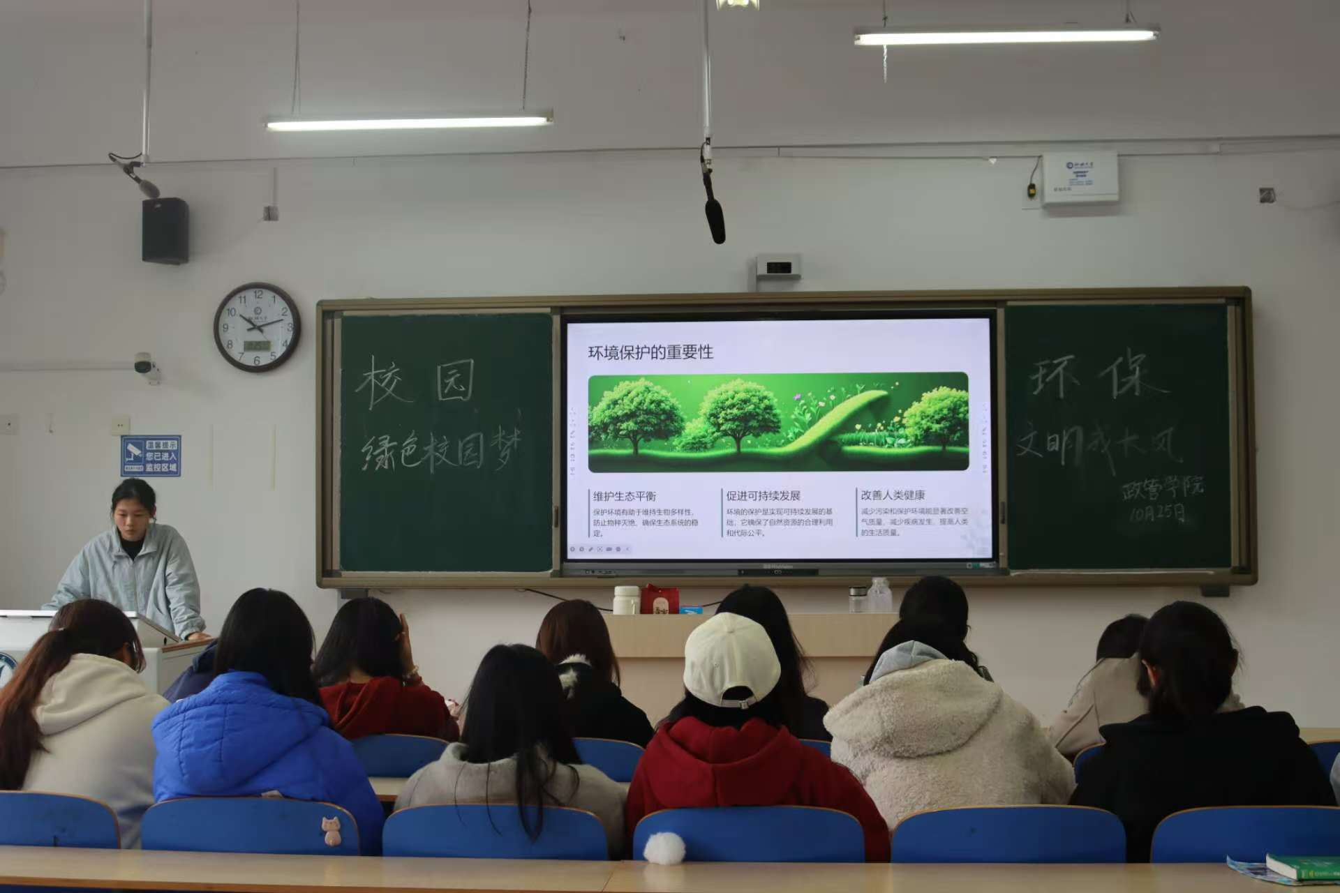 为提高同学们的环保意识,呼吁同学们践行绿色生活方式,10月29日,政治与公共管理学院于东校区6#C206举办“绿色校园梦,文明成长风”思想成长活动。