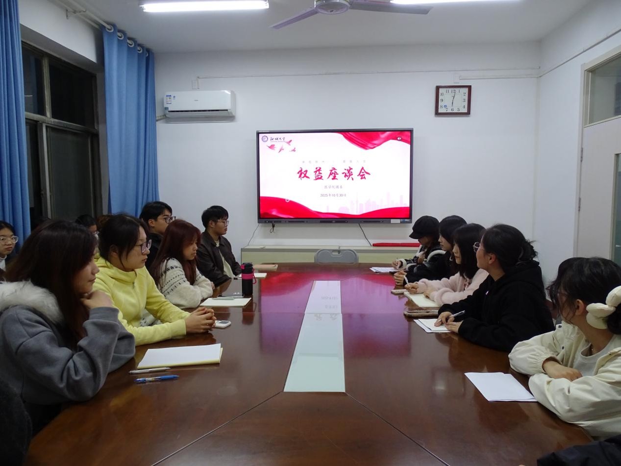 为及时了解学生在学习生活中的实际诉求,提升学生权益服务质量,10月30日晚,医学院于东一办公楼会议室举办“权益面对面”主题座谈会。医学院2023级、2024级学生代表积极参加。
