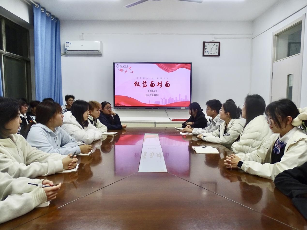 为深入了解学生诉求,切实维护同学权益,营造良好校园环境,10月29日,医学院于东一办公楼会议室举办“权益面对面,沟通零距离”主题座谈会。本次座谈会由辅导员史秋波主持,学生会权益服务部及2025级新生代表参加。