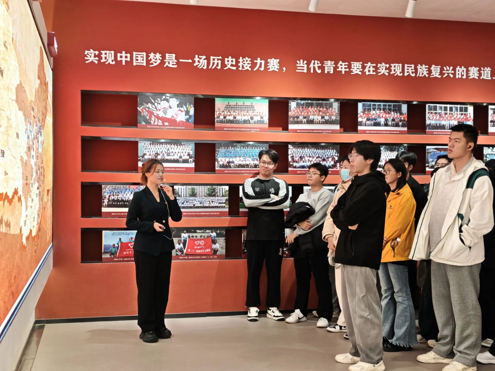 同学们来到聊城大学西部计划教育展馆,开启以“追寻西部奉献足迹,传承聊大奋斗基因”为主题的精神学习之旅。展馆涵盖“党旗召唤,青年航向”“山河见证,青春足迹”“初心如磐,奋斗筑梦”“立德树人,托举理想”“绚丽绽放,书写荣光”五个核心篇章,通过图文展示、视频讲解等多种形式,铺陈出20余年来聊大学子响应国家号召、奔赴西部基层、奉献青春力量的壮丽画卷。参观期间,同学们或驻足凝视展品细节追溯背后故事,或与同伴交流参观感悟分享思想启发,现场氛围浓厚而热烈。