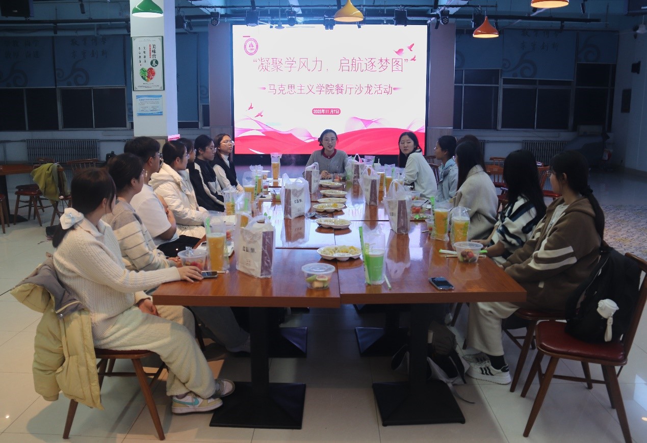 为营造开放包容、教学相长的学术氛围,促进师生之间的思想交流,11月8日,马克思主义学院于东校区翰苑餐厅二楼举办“凝聚学风力,启航逐梦图”餐厅沙龙活动。2025级辅导员裴新丽主持活动,权益服务部代表及各班级学习委员共同参与。