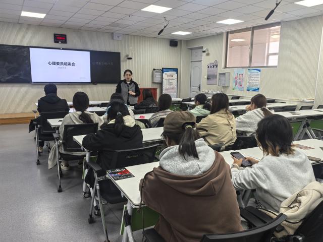 为深入贯彻落实高校心理健康教育工作要求,进一步健全学院心理防护体系,提升班级心理委员的专业素养与实际工作能力,11月10日,地理与环境学院于东校区4#B208举办“精研心理服务 筑牢成长防线”专题培训活动,本次活动由辅导员贺景华主持,大一大二年级全体心理委员参与。