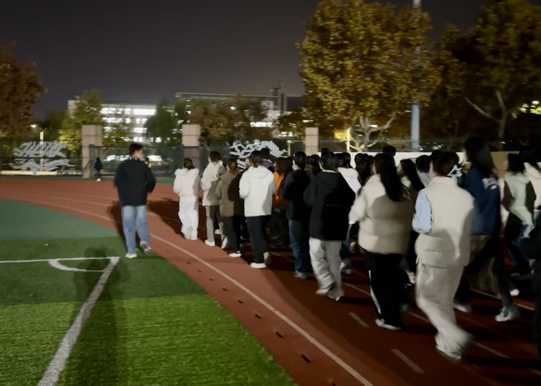 作为学院聚焦学生全面发展的常态化举措,活动摒弃复杂环节,以“全员参与、安全第一”为原则,搭建便捷的运动平台。学院固定校园环形路线,每周设定固定时段开放活动,为参与者提供荧光手环等基础装备,沿途设置简易补给点与安全指引标识,由志愿者提供基础保障。每到活动时间,全院学子积极参与,无需复杂报名流程,带上荧光装备即可加入奔跑队伍。夜色中,点点荧光串联成流动的风景线,同学们或独自慢跑、或结伴同行,在轻松的氛围中释放压力、强健体魄,用脚步丈量青春,用运动凝聚活力。