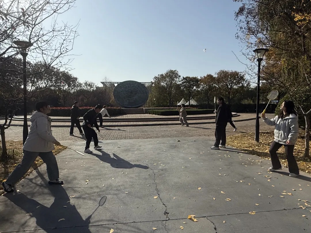 本次活动作为学院体育普及培育项目的核心实践内容,以“普惠性、趣味性、协作性”为原则,围绕羽毛球技能实训与环湖跑步两大板块,采用班级分组模式有序开展。在日晷广场活动现场,同学们自主组队,或开展双人对练,切磋发球技法、规范动作要领,在互学互鉴中夯实运动基础;或组建竞技小队展开对抗,攻防转换间尽显敏捷身姿,清脆的击球声与喝彩声交织回荡,充分展现了学子们扎实的运动素养与昂扬的竞技风采。