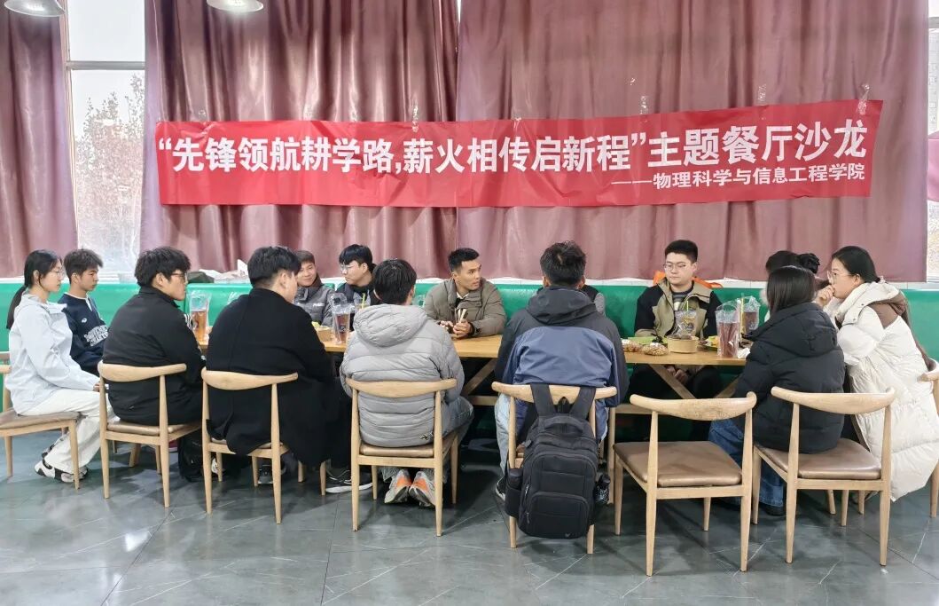 为进一步锤炼党员学生干部的先进性与引领力,强化学业帮扶实效,充分发挥先锋模范带头作用,11月25日下午,物理科学与信息工程学院组织开展“先锋领航耕学路,薪火相传启新程”主题餐厅沙龙活动。本次活动由学院辅导员王平牵头组织,部分2025年本科学生发展党员代表积极参与。