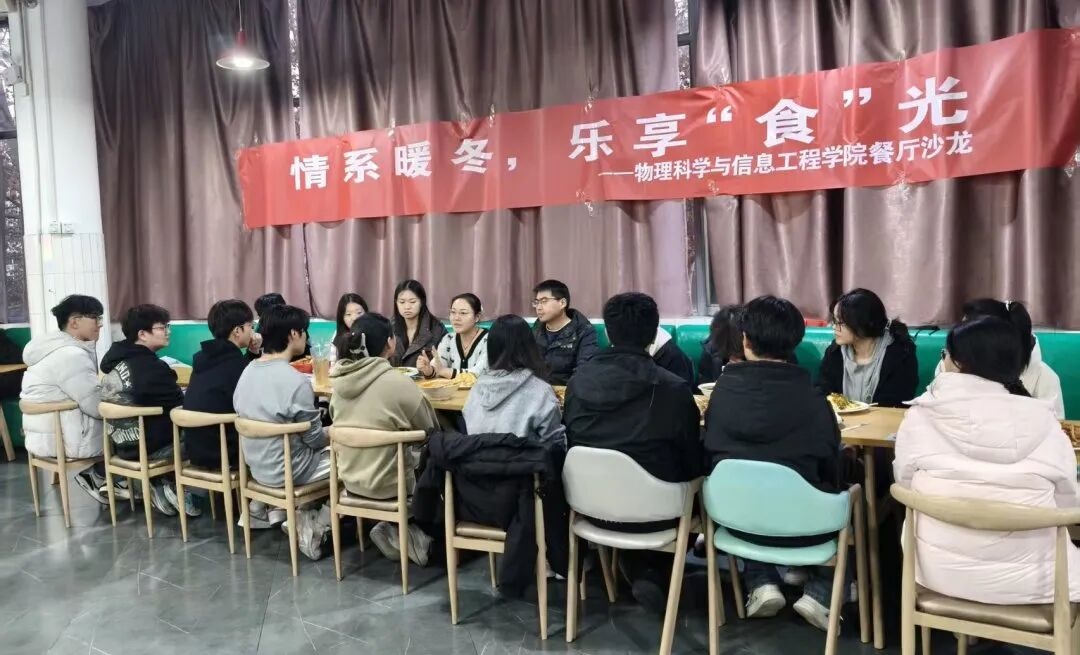 为进一步引导学生强化创新意识、提升工作能力,缓解同学们在学习、工作和生活中的压力,11月25日,物理科学与信息工程学院开展“情系暖冬,乐享‘食’光”餐厅沙龙活动。辅导员李姝霆、门英豪及学生代表共同参与,师生在轻松交谈中凝聚成长共识。
