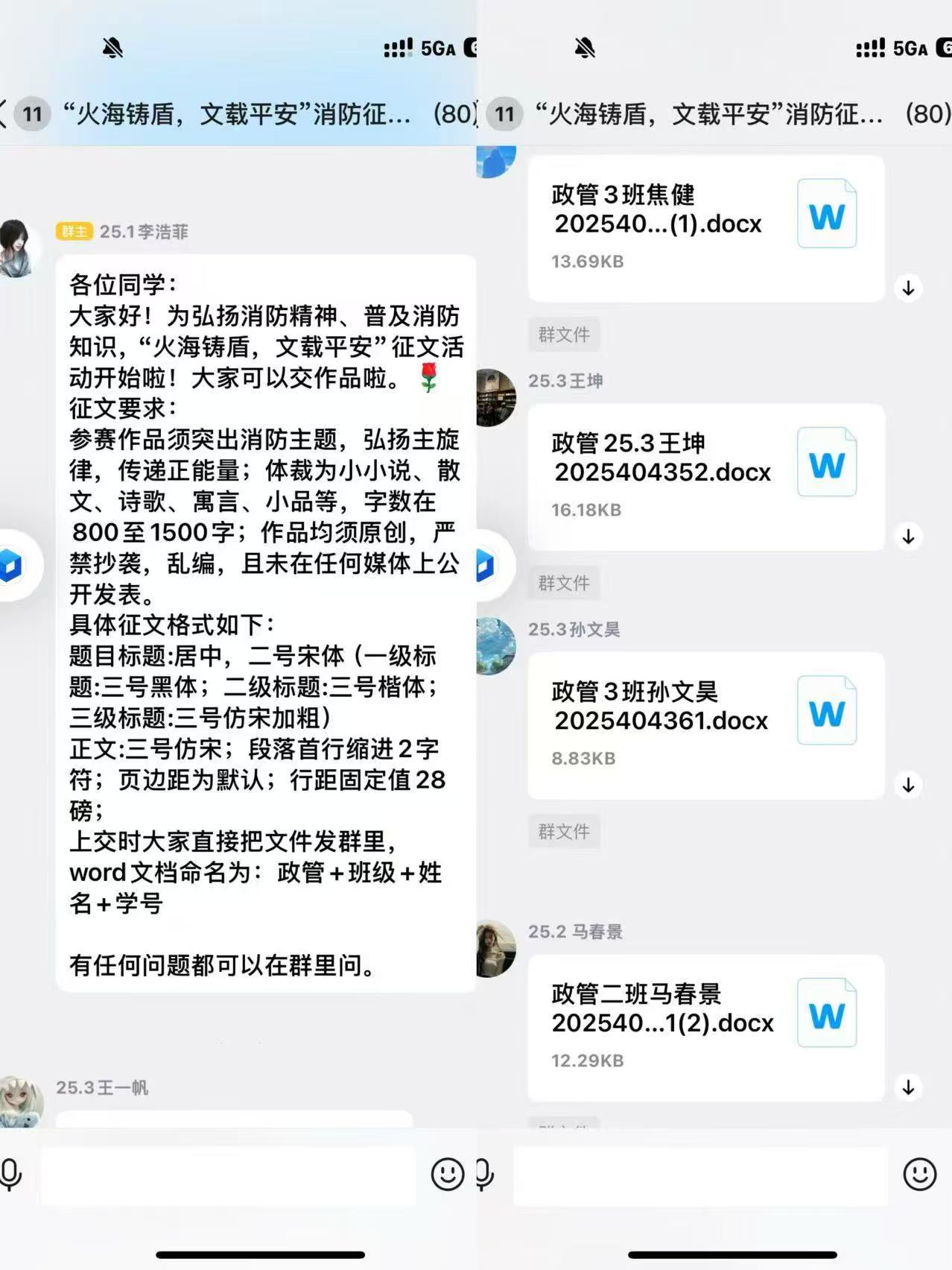 为增强同学们的消防安全意识,营造安全和谐的学习生活环境,11月24日至11月28日,政治与公共管理学院于线上举办“火海铸盾,文载平安”消防征文活动。