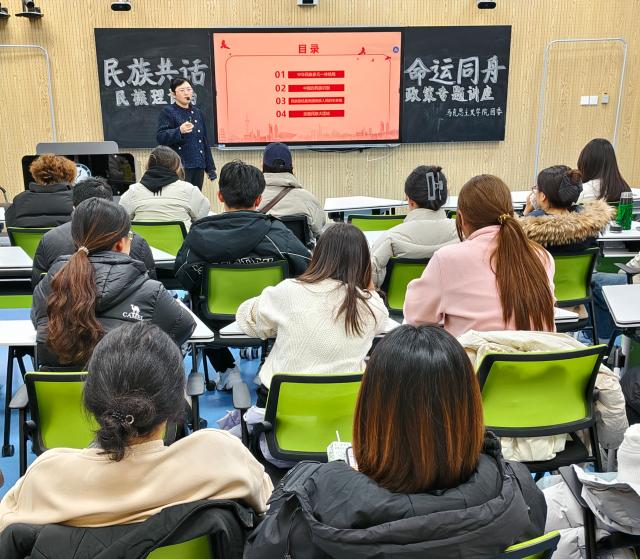 为深化学生对国家民族理论与政策的理解,铸牢中华民族共同体意识,11月27日,马克思主义学院于东校区6#A206举办“民族共话,命运同舟”民族理论与政策专题讲座。本次活动特邀郗灵芝老师担任主讲人,各班班团及少数民族学生代表参加。