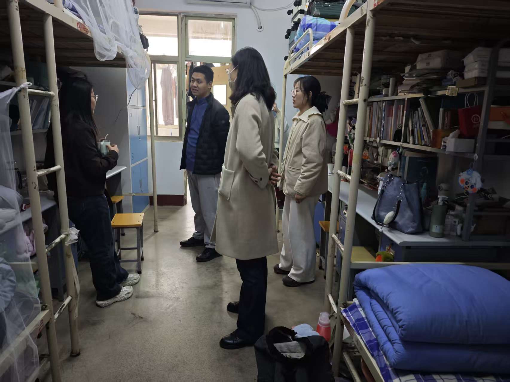 为深入了解学生思想动态与现实需求,进一步夯实校园安全稳定基础,11月28日,马克思主义学院于东校区群星公寓20号楼开展“一线察实情,暖心解难题”宿舍走访活动。学院党委副书记、副院长刘凤芹,团委书记史仁扩及辅导员裴新丽共同参与走访。
