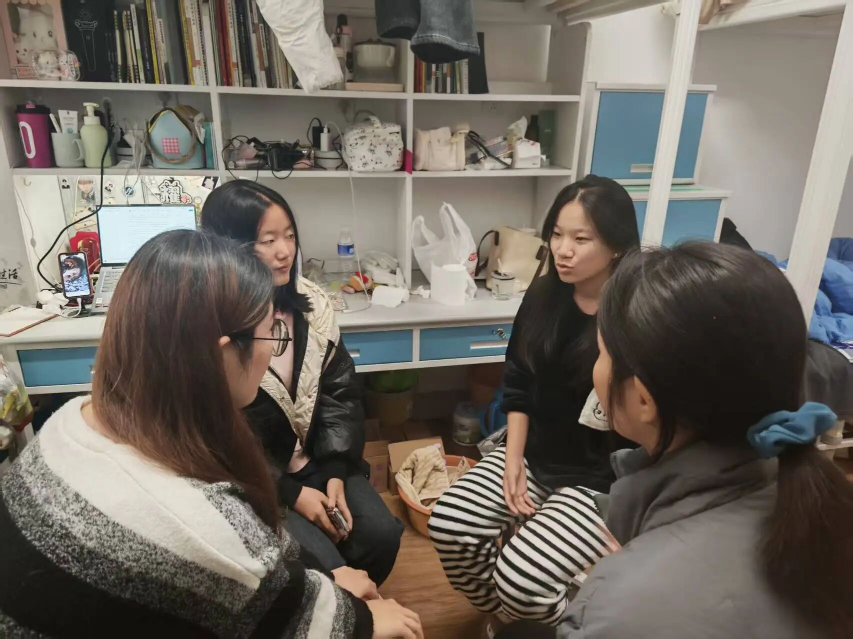 走访过程中,心理健康发展中心成员与同学们开展交流,询问他们入学以来的适应情况、学业压力、人际关系等相关问题,重点了解近期学业进展及异地同学在生活起居、饮食习惯、气候适应等方面的状态,完成初步的情况摸排。成员们着重关注同学们与室友的日常相处模式、社团活动参与情况,通过多层面、近距离的细致沟通,为后续开展帮扶服务奠定基础。