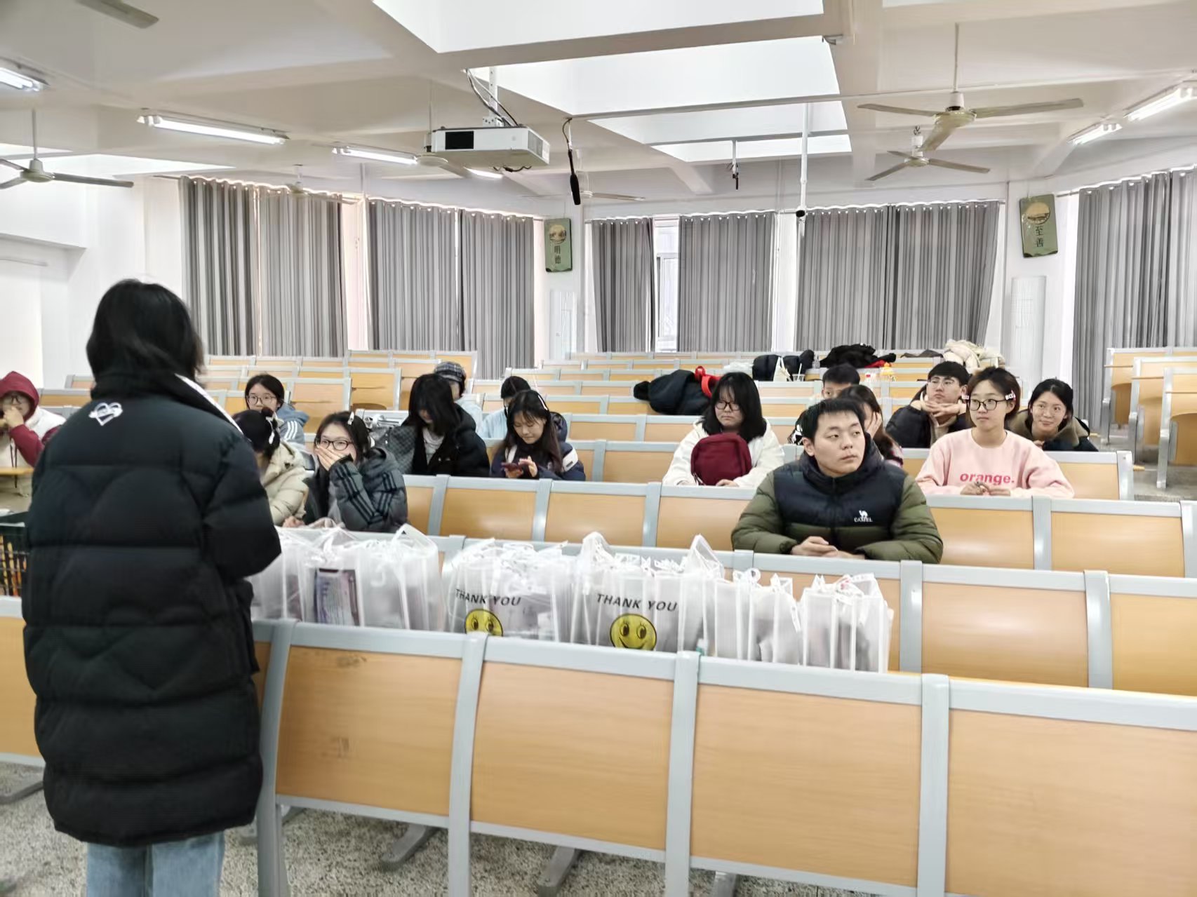 12月3日,传媒技术学院2022级辅导员、班主任于教室开展考研爱心大礼包发放活动。