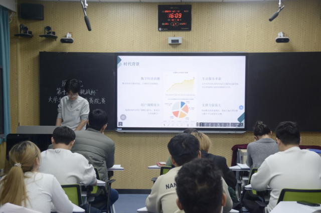 本次院赛聚焦“医疗健康+科技赋能”主题,8支参赛团队带着精心打磨的科创项目登台竞技,各展所长、亮点频出。各小组项目立足社会现实需求,覆盖农业发展、医疗服务、校园建设、绿色消费等多个领域,精确定位各领域的实际痛点与发展难点,将物联网、人工智能、深度学习、新材料研发等前沿技术与医学专业特色深度融合,给出一批兼具实用性与创新性的优质方案。从用智能技术为农田管理提质增效的乡村振兴方案,到依托AI技术优化骨龄评估、基层诊疗的医疗创新项目;从打造“小程序+社群”模式的居家康复服务体系,到构建“能耗可视化+行为引导”的零碳校园平台,每一个项目都彰显着学生们将专业知识与科创实践结合的巧思,也体现出他们关注社会、解决实际问题的责任与担当。答辩环节中,评委围绕项目可行性、市场竞争力等关键维度精准发问,与同学们展开深度的讨论,点评犀利深刻,并给予同学们针对性的建议;参赛选手应答逻辑清晰、从容有度,现场互动氛围热烈融洽。