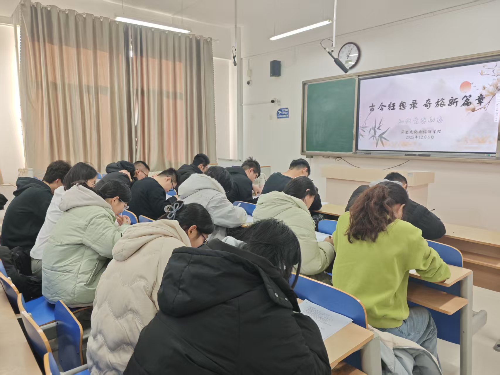 为引导同学们深入了解中华文明的发展脉络,在感悟山河壮美与人文底蕴中提升综合素养、厚植家国情怀,12月6日,历史文化与旅游学院于6#A304教室举办“古今狂想录,奇旅新篇章”知识竞赛初赛。