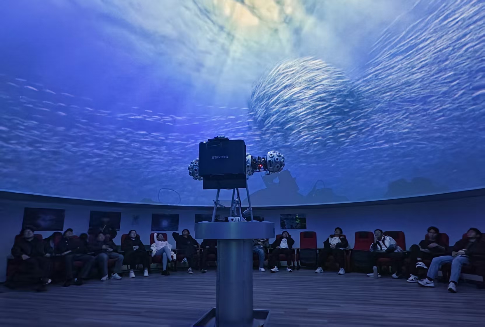 活动最后一站,同学们走进天象馆。馆内借助先进的全息投影技术,将黄道十二星座的空间分布与星象形态进行直观呈现,让抽象的天文知识变得生动可感。讲解员结合专业器具,系统讲授星座视觉定位原理,逐帧展示高精度四季星图,深入解析不同季节的星空特征、星座运行轨迹及天体运动规律,引导同学们沉浸式感受宇宙奥秘。活动尾声,现场播放融合海洋生态与天文科学的科普短片,以跨学科视角串联自然科学知识,有效拓宽了同学们的学术视野,进一步激发了大家探索自然、求知向学的浓厚兴趣。