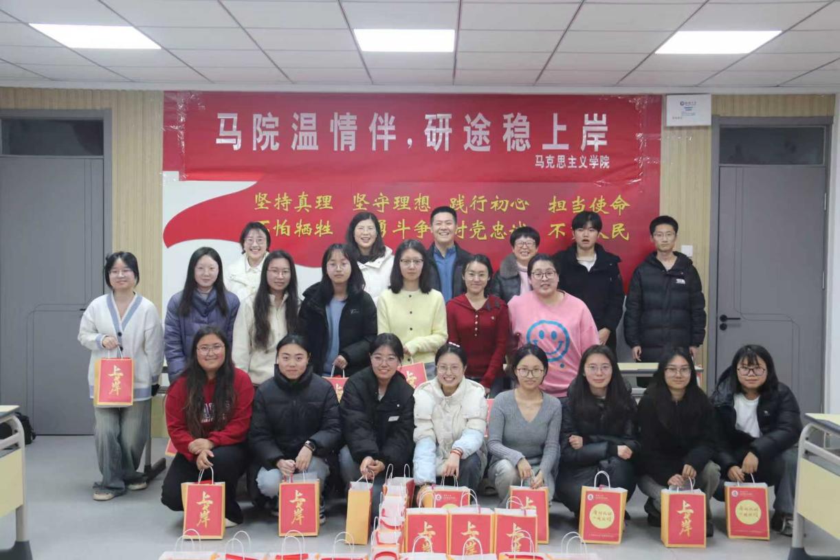 12月12日,马克思主义学院党委副书记、副院长刘凤芹,团委书记史仁扩,辅导员李洪霞、裴新丽于我院“一站式”学生社区为学生发放考研大礼包,预祝考研学子“马”到成功、一战成“硕”。