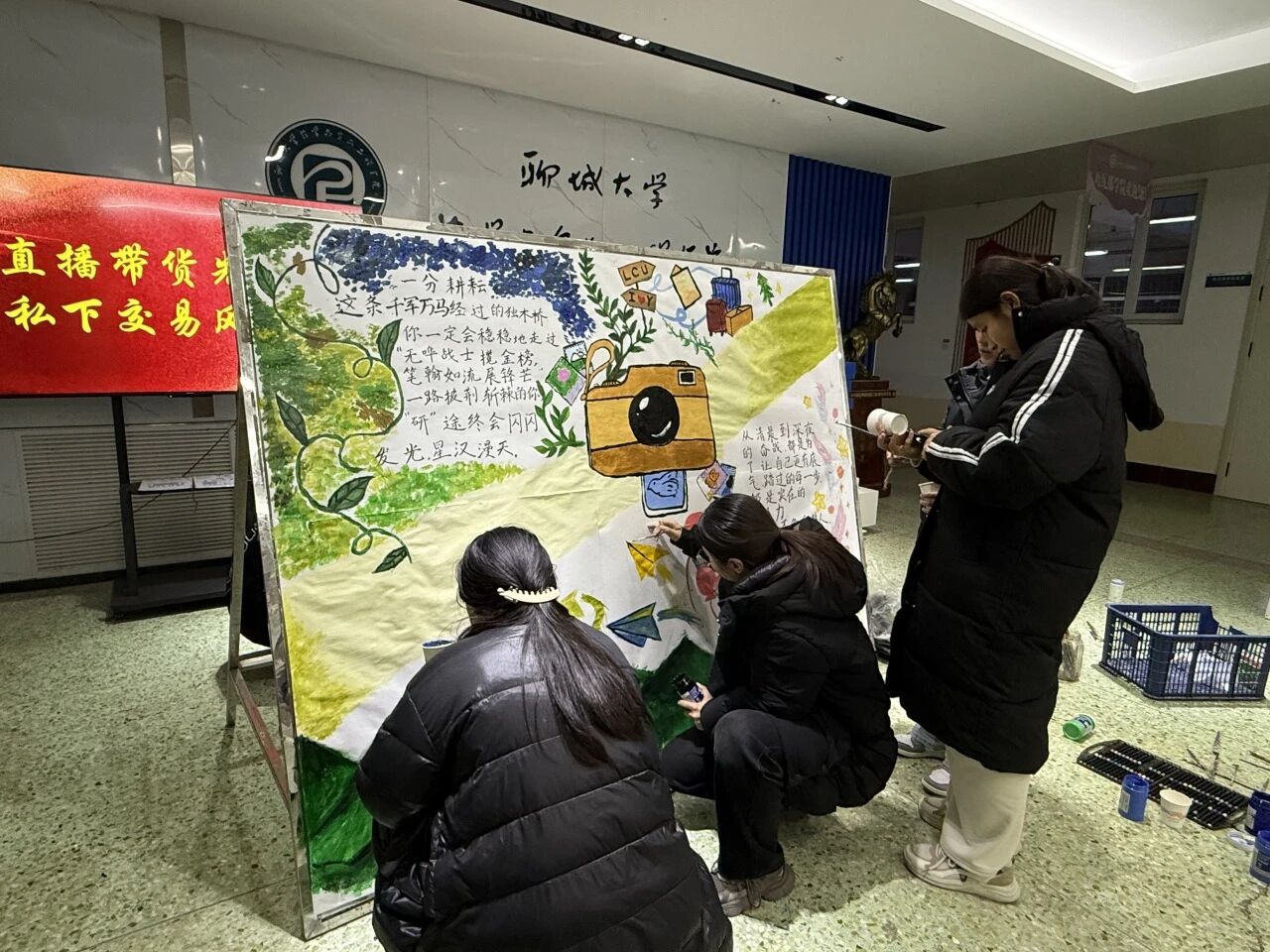 为帮助考研学子缓解冲刺阶段的心理压力,增强其备考信心,12月14日,聊城大学药学与食品工程学院举办以“全力以赴追梦,研途终启新程”为主题的展板创作活动。