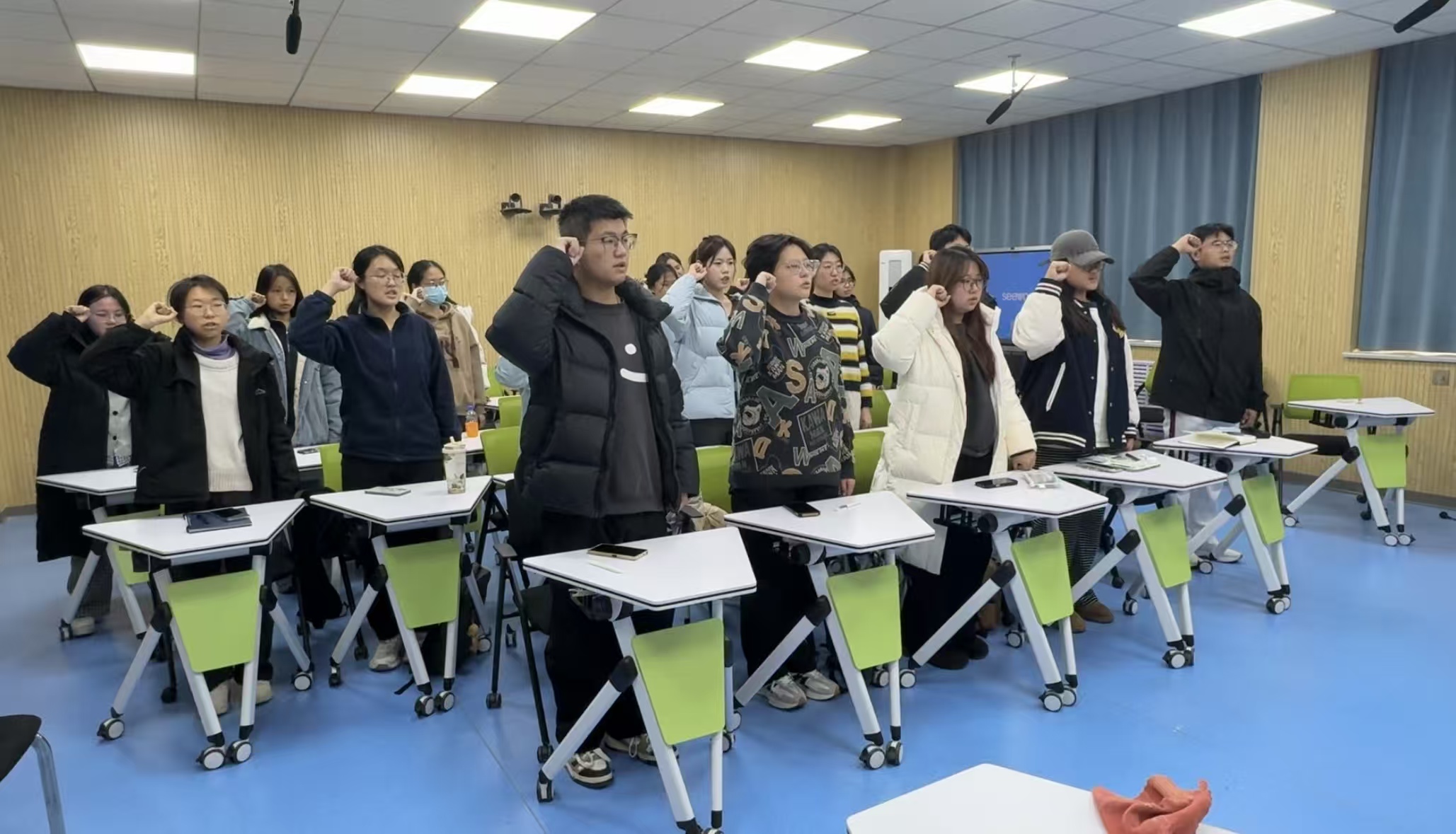 在互动环节,同学们围绕“诚信考试对我们意味着什么”展开讨论,并在“诚信承诺贴”上书写感悟与提醒,共同组成一面“诚信之墙”,以实际行动表达对诚信考试的庄严承诺。活动最后,全体同学起立宣誓,郑重承诺“严守考场纪律,恪守诚信准则”,并通过视频记录下这一严肃时刻。
