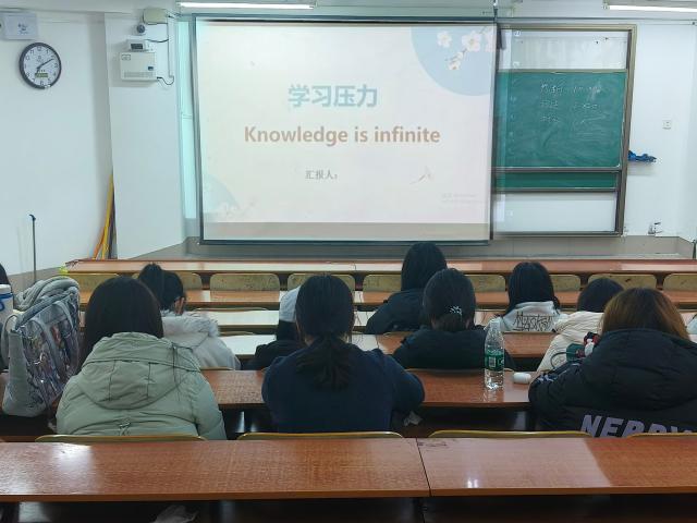直面学业压力,解锁心理智慧。活动伊始,王丽丽以提问的方式切入,围绕“学习压力”这一核心,带领同学们深入探讨大学与高中阶段的学习差异。从学习氛围的宽松自主到学习场所的灵活多元,再到学习方式的主动探索,王丽丽细致剖析了不同阶段学习模式的转变,精准定位了学业压力产生的环境诱因,让在场学生对自身面临的压力有了更清晰的认知。随后,她结合真实案例,指出过度的学业压力不仅会影响学习效率,还可能引发焦虑、迷茫等负面情绪。并建议同学们要认真复习、避免挂科,更要明确学业目标与规划,坚定想法并付诸行动。
