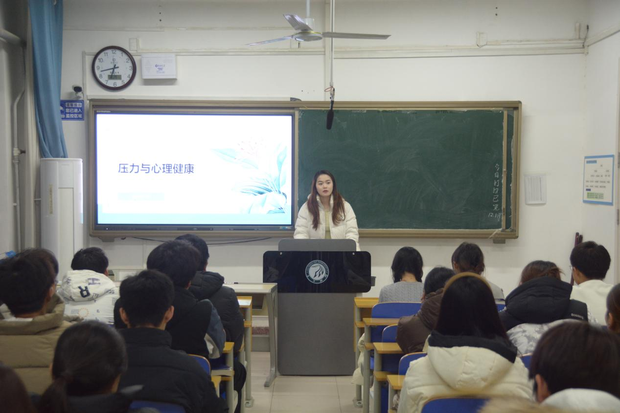 讲座过程中,王丽丽还通过趣味互动提问等形式,引导同学们主动审视自身压力状态,精准定位个人压力痛点,使在场同学深刻认识到及时调节心理状态的重要意义。最后,她重点分享了一系列简便易行的减压技巧,助力同学们科学分配学习精力、规避拖延内耗。同时,她特别提醒,若遭遇难以疏解的心理困扰,应主动向辅导员及身边老师、同学寻求帮助。