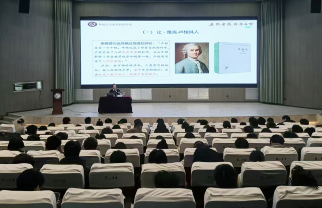在《爱弥儿》专题解读环节,满教授以卢梭思想内核为锚点,结合著作创作的时代背景与核心意图,系统剖析书中自然主义教育思想、教育目的论与教育方法论等要旨。他立足物理学专业实际,将卢梭教育理念与物理学科的探究精神、实践特质相结合,以实例具象化理论,让在场学子深刻领会《爱弥儿》的思想深度、逻辑体系与时代价值。最后,满教授结合相关教育论述,勉励同学们珍惜大学韶华,以“知足而奋进、勤勉而无悔”的态度治学修身,既要夯实物理专业学识根基,成为精通专业的“经师”;也要深耕教育经典、涵养教育情怀,争当塑造品格的“人师”。