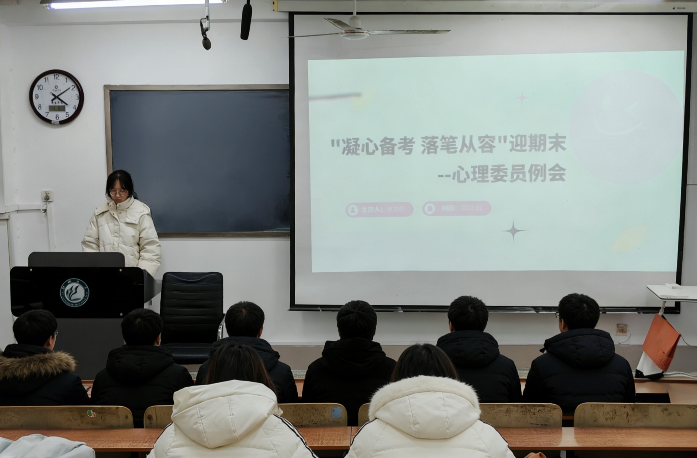 12月24日,传媒技术学院于11#C101开展了“凝心备考,落笔从容”迎期末心理委员例会。此次活动由心理教育服务中心的张姝贤担任主讲人,传媒技术学院25级各班心理委员参与了此次活动。