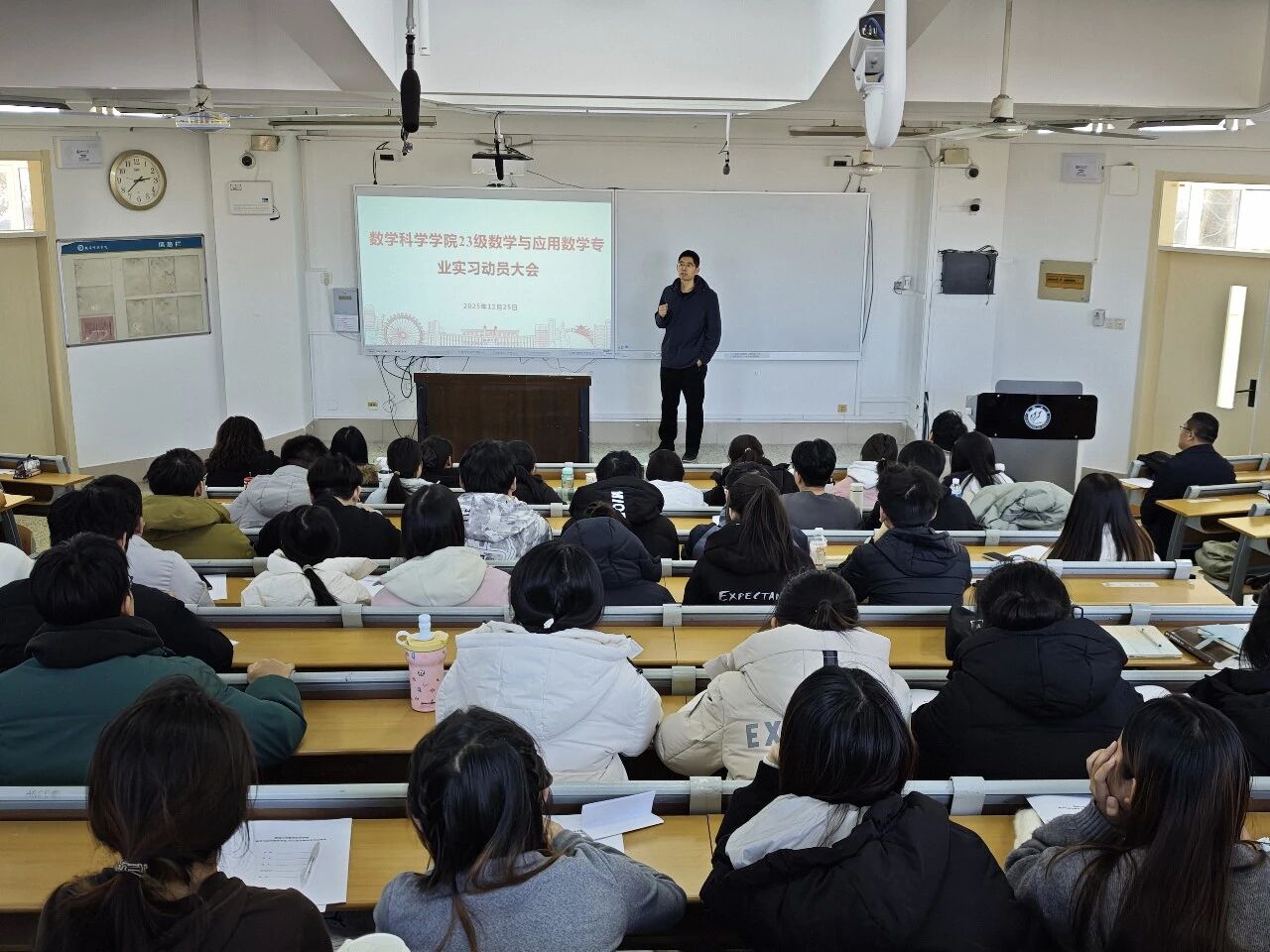 为帮助学生明确实习要求,12月25日,数学科学学院于11号教学楼C204教室举办2023级数学与应用数学专业实习动员大会。本次大会由张化生主持,副院长赵军圣出席会议,2023级数学与应用数学专业全体学生参加。