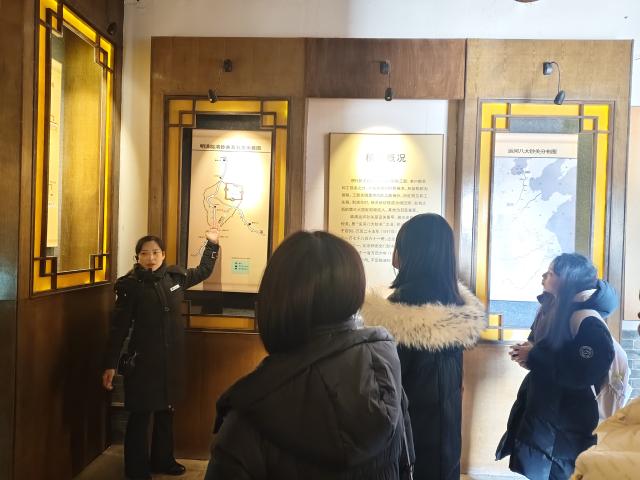 师生沿古运河岸线缓步走进临清运河钞关遗址,凝望斑驳砖石与残存漕运设施,实地探访这座明清运河八大钞关中保存最完整的遗迹。老师们以遗址遗存、碑刻铭文和馆藏文献为切入点,结合展出的漕运通关文牒、税收账簿等珍贵文物,细致梳理出明清运河漕运的兴盛轨迹,厘清运河沿线商贸税收制度的发展脉络。
