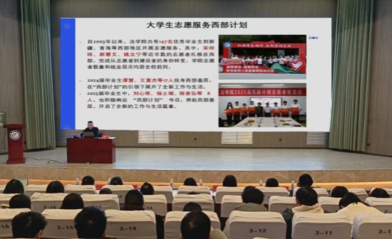 此次宣讲会有助于法科学子全面了解西部计划,强化奉献意识,拓宽就业思路,为未来职业选择提供更多可能;有助于法学院持续推进西部计划宣传动员工作,不断加大推广力度,引导更多毕业生扎根基层、建设祖国。