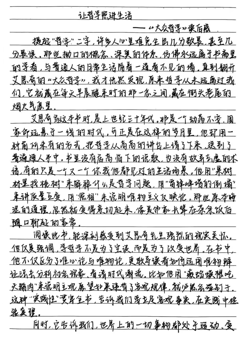 打卡阶段,大家结合个人阅读节奏灵活参与,通过多元形式呈现阅读思考与学习过程。其中,吕书泽坚持每日打卡,完成《毛泽东选集》第一卷的阅读,并提交内容扎实、见解深入的读后感,展现出严谨的理论学习态度;王恩欣全程积极参与《大众哲学》阅读,持续打卡并录制音频分享感悟,以学促思、以讲促学;李承玉认真阅读《平凡的世界》,坚持摘抄经典片段并附上个人思考,打卡与感悟完成度较高。大家以多样形式将阅读融入假期,实现从“被动阅读”到“主动思考”的转变,在阅读中提升素养、锤炼品格。