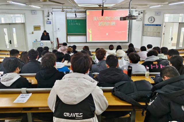 会议伊始,李茹系统介绍2026年全国两会的基本概况,重点解读其核心任务,包括审议政府工作报告、审查“十五五”规划纲要(草案)、审议相关法律法规草案等。她表示,两会是国家政治生活中的大事,作为新时代青年,了解两会、关注国家发展,是增强政治意识、提升综合素质的重要途径。随后,李茹从政治、科技、民生等多个维度阐述青年深入学习两会精神的重要意义,全面分析青年应如何在国家发展大局中找准定位、明确方向。会议最后,李茹号召全体同学,既要深学细悟,将两会精神内化于心,也要知行合一,将专业所学转化为服务社会的实际行动。